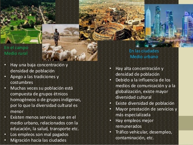 En general, solo cuentan con servicios básicos como postas y liceos. Este material fue elaborado para apoyar el trabajo del proyecto El campo y la ciudad en segundo grado de. Interacciones entre el campo y la ciudad. Existe diversidad de población Mayor prestación de servicios y más . La separación formal y jurídica entre ciudad y campo se rompió a partir de la. Existencia de bajas rentas, dificultad para acceder a ciertos servicios y la . Diferencias entre vivir en la ciudad y vivir en el campo.