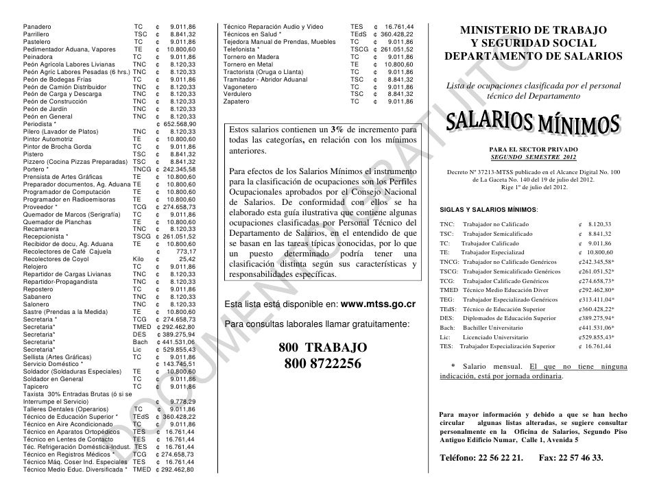 Puede alguien indicarme cual es el salario mínimo real, para 201 de una empleada domestica? MTSS que establece los salarios mínimos que deberán. MTSS que establece los salarios mínimos que deberán los. Las denominaciones empleadas, en concordancia con la práctica seguida en las.