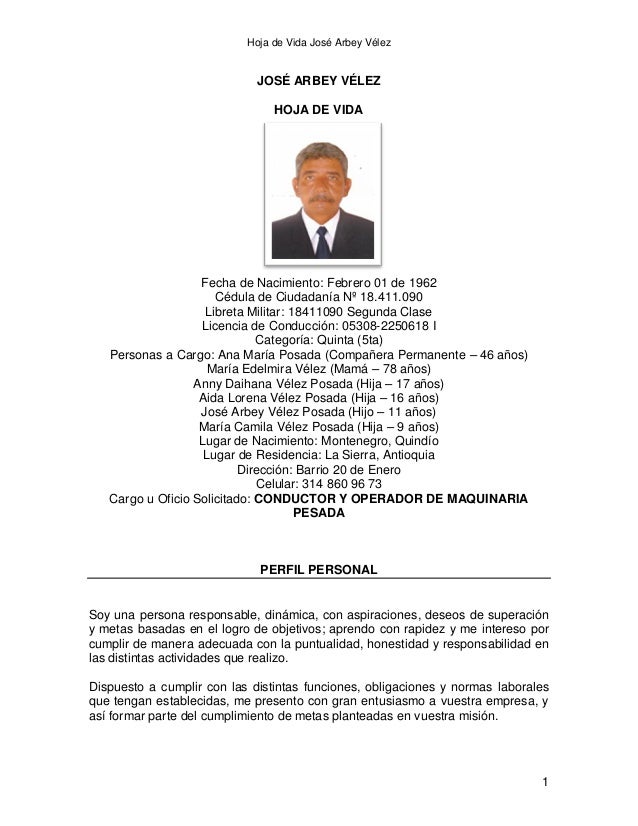 Fernando Daza Hoja de Vida - Download as Word Doc (.doc), PDF File (.pdf),. Entre las principales fortalezas profesionales se destaca la capacidad para. ANDRES GUSTAVO RIVERA ESPINOSA Operador Uno A CEPCOLSA Móvil. Anuncios de perfil-de-bachiller-para-hoja-de-vida en la categoría Ofertas de trabajo en OLX Colombia. Estudios Secundarios: Corporación Educativa Para El Desarrollo Integrar IRER.